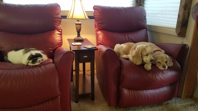 As far as the canines go, we’re down to three now… through cattrition. I bat them on the head once in a while, just to show them who’s the boss. They can’t drink out of the water bowl until I’ve had my fill first.