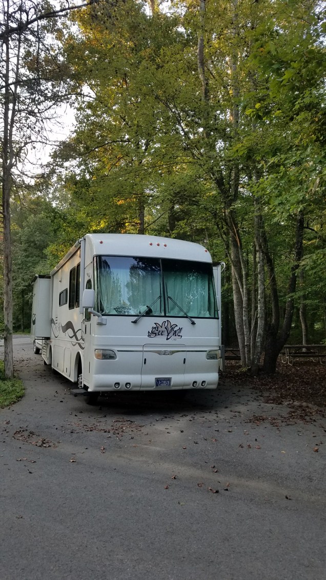 We stopped for the night at the Cumberland Gap National Historical Park in Middlesboro, Kentucky. At least I think it’s in Kentucky. One thing I read said it’s in Virginia. We’re very close to Tennessee too.