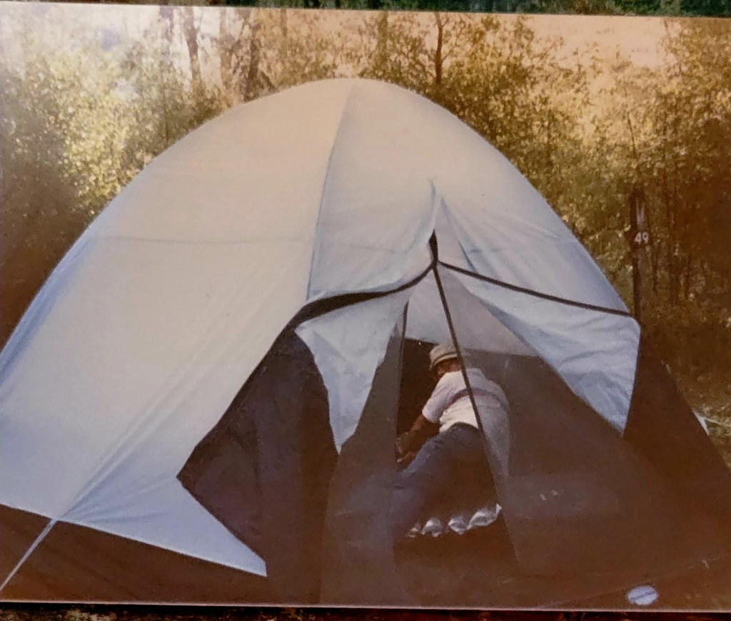 A year or so later, we remembered that experience and bought a tent. We took the kids and went to Dangerfield State Park. We had been there on a day trip and had a lot of fun. They have a little pond and paddleboats to play with.