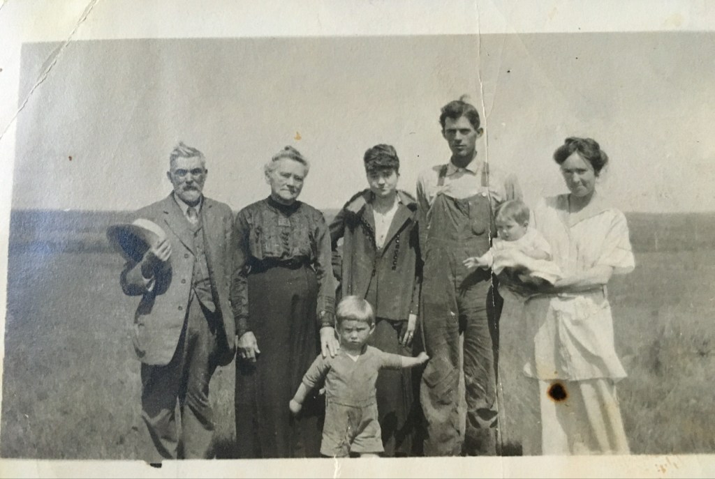 It was a tough life on the farm there. Even though the family had a Model A, Grandpa later bought a Model T which made the two miles on dirt roads then the 5 miles on gravel roads easier. Aunt Helen later wrote that she was always happy growing up even in tough times. She dressed the farm kittens like her babies and loved playing house, even though she had chores and worked hard as did the entire family. The kids road a horse three miles to school and did not like leaving their horse all day in the barn at school with no food. There were 12 students in the country school in eight grades.