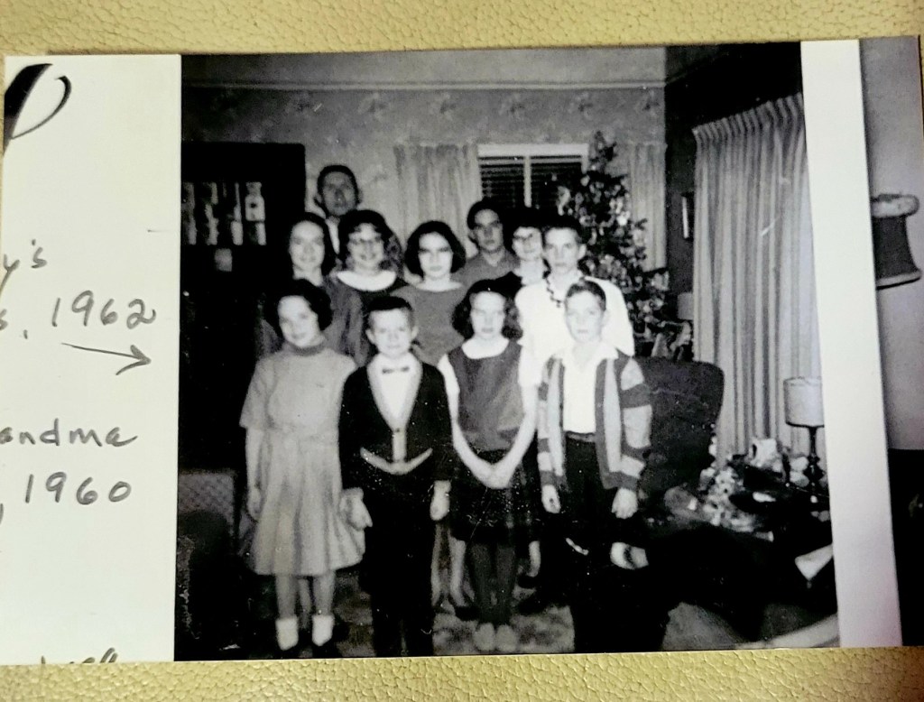 A CHRISTMAS WITH MOST OF THE COUSINS- ANDREA IS THIRD FROM THE LEFT.