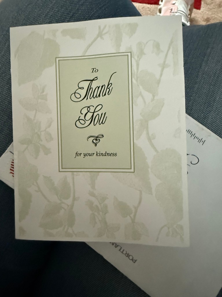I’m still crying each time I look at the envelope. It’s a relief that all has been done that can be and that Pam is dealing with it so gracefully. She had an incredible mother. She loved her a great deal.